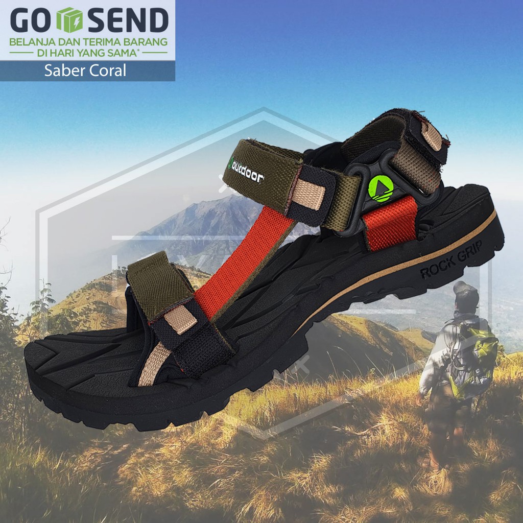 sandal gunung outdoor pro ini cocok dipakai untuk kegiatan outdoor, side guard protector melindungi sisi bagian luar kaki dari benturan pada saat aktivitas. bobot ringan dan sole empuk nyaman dipakai