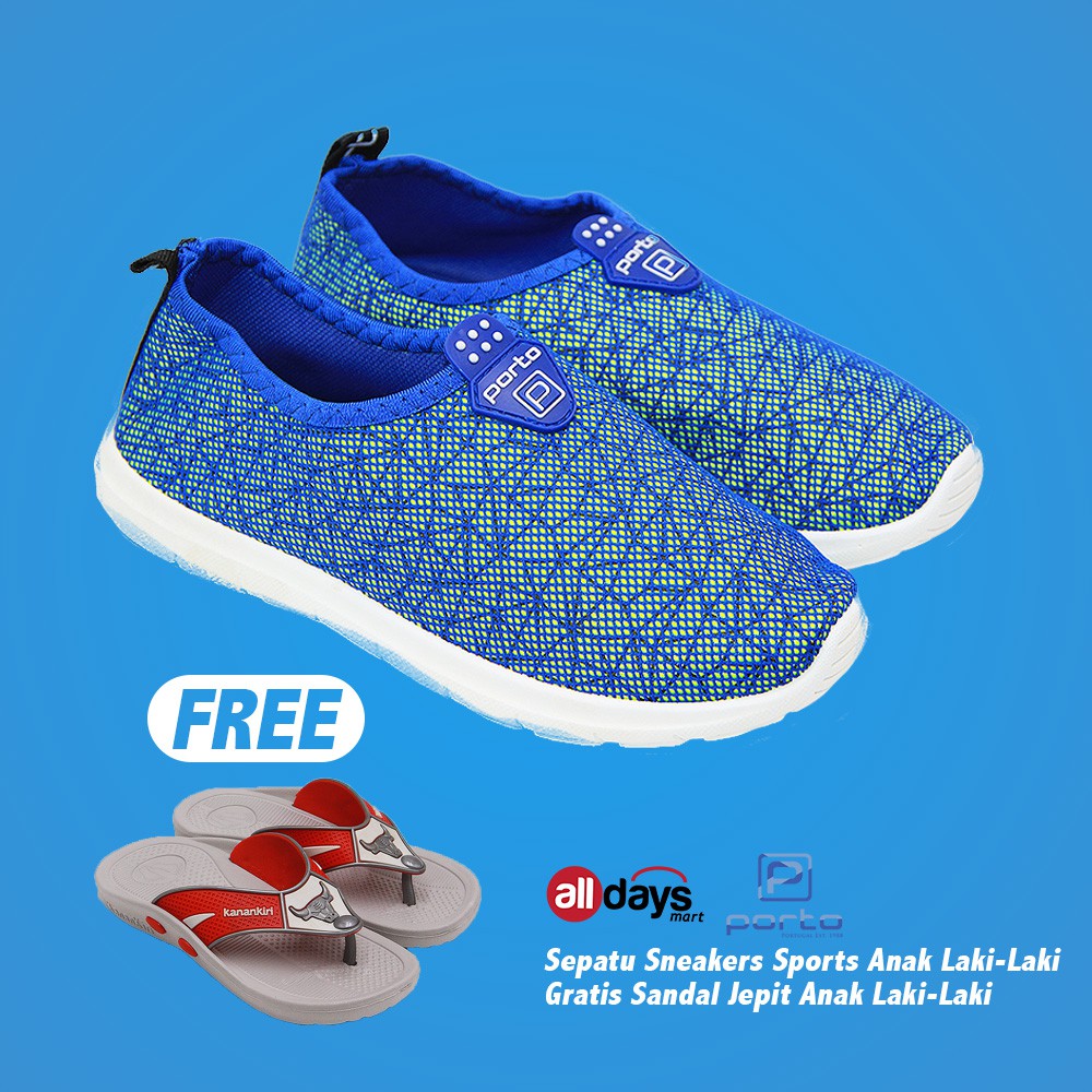 Sepatu Formal Anak Laki-laki Porto Sports Sneaker 004b FREE Sandal Jepit 5008B Size 31-35 Murah Bayi