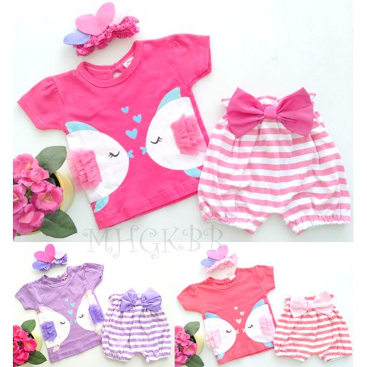 Setelan Pakaian Anak Perempuan GK @43rb seri 3pc D968 pink tutu set kissing fish allsize 0-12m Murah Bayi