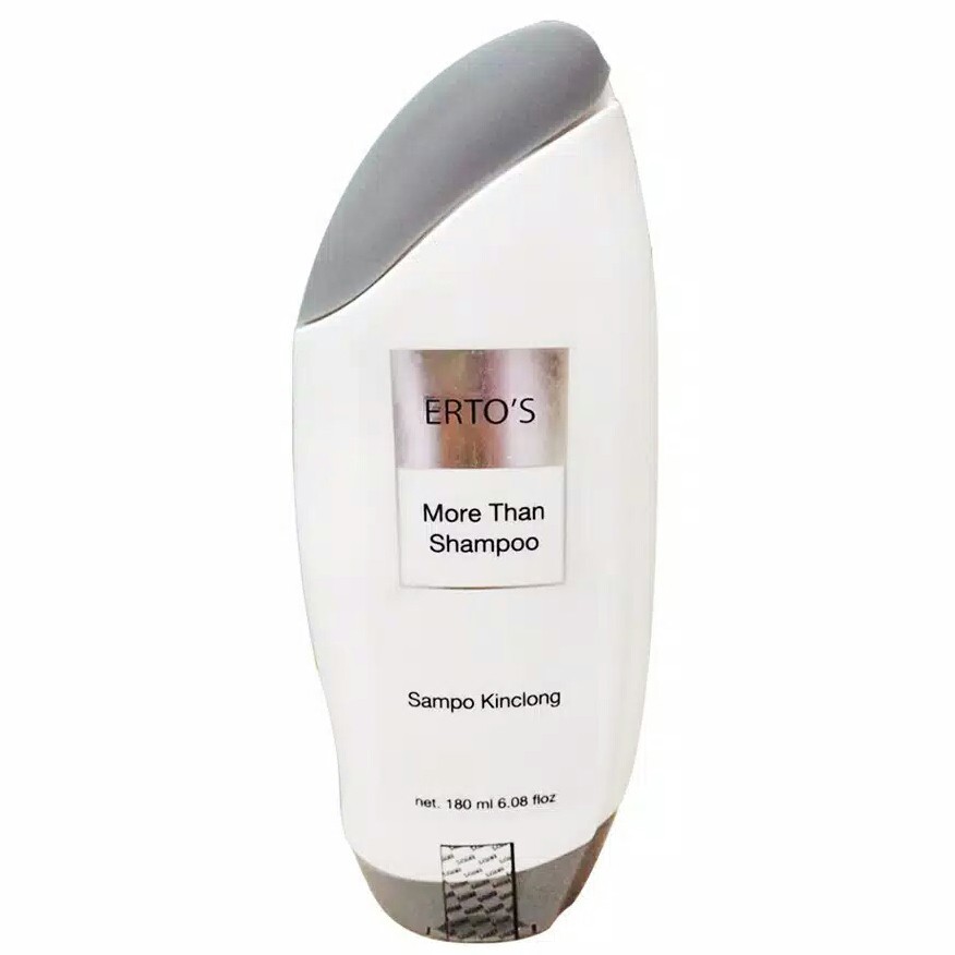 tuangkan sedikit erto's more than shampoo sampo kinclong pada rambut yang telah dibasahi. gunakan ujung jari untuk memijat kepala dan membuat shampoo berbusa. bilas dengan air hingga bersih