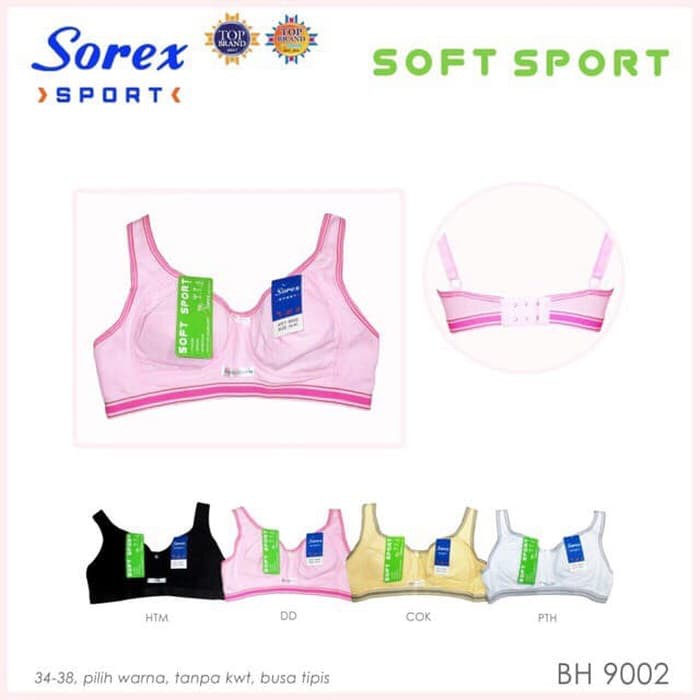 pakaian dalam sport bra / bh wanita sorex 9002 ini dibuat dari bahan katun yang berkualitas dan sangat nyaman digunakan untuk aktivitas olahraga anda seperti fitness, aerobic, bersepeda atau aktifitas sehari-hari anda. sport bra / bh wanita sorex 9002 ini dilengkapi dengan busa tipis, tanpa kawat dan dipermanis dengan hiasan cantik.
