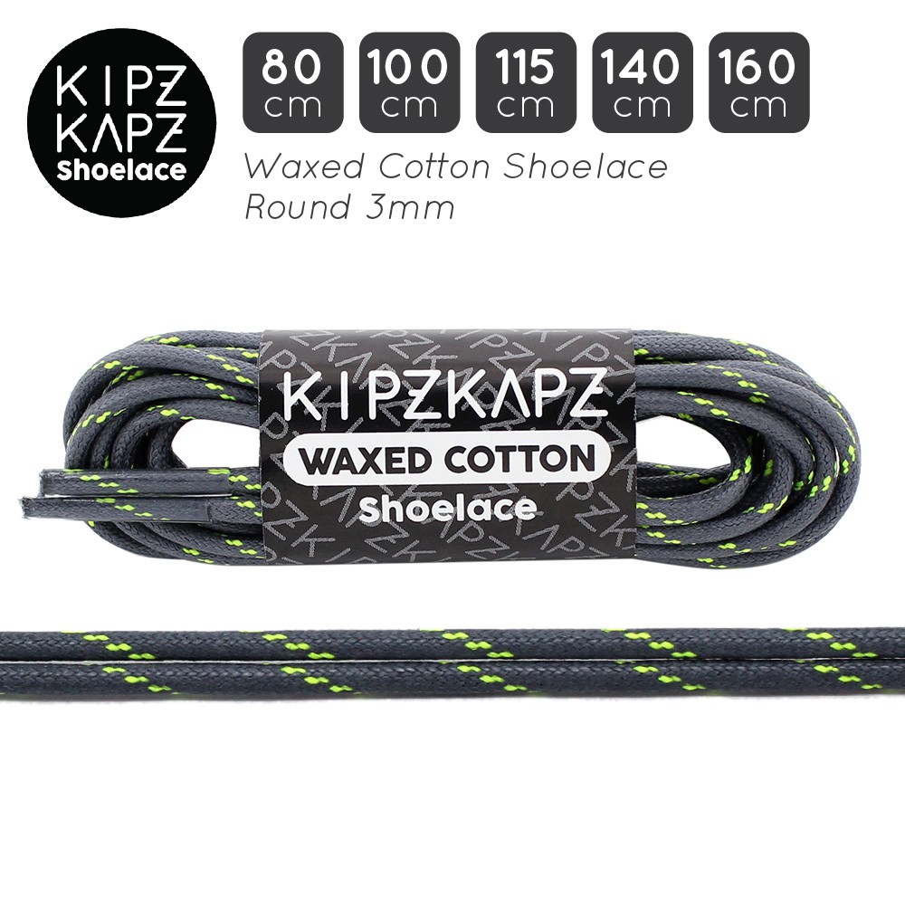 Tali Sepatu Aksesoris Perawatan KipzKapz WS29 Grey with Green Stripes 80cm 100cm 115cm 140cm 160cm Waxed Cotton Round Shoelace Murah Pria
