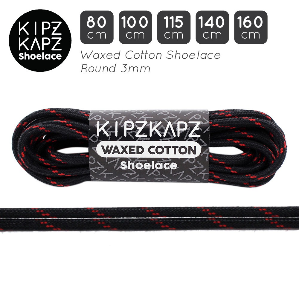 Tali Sepatu Aksesoris Perawatan KipzKapz WS28 Black with Red Strips 80cm 100cm 115cm 140cm 160cm Waxed Cotton Round Shoelace Murah Pria