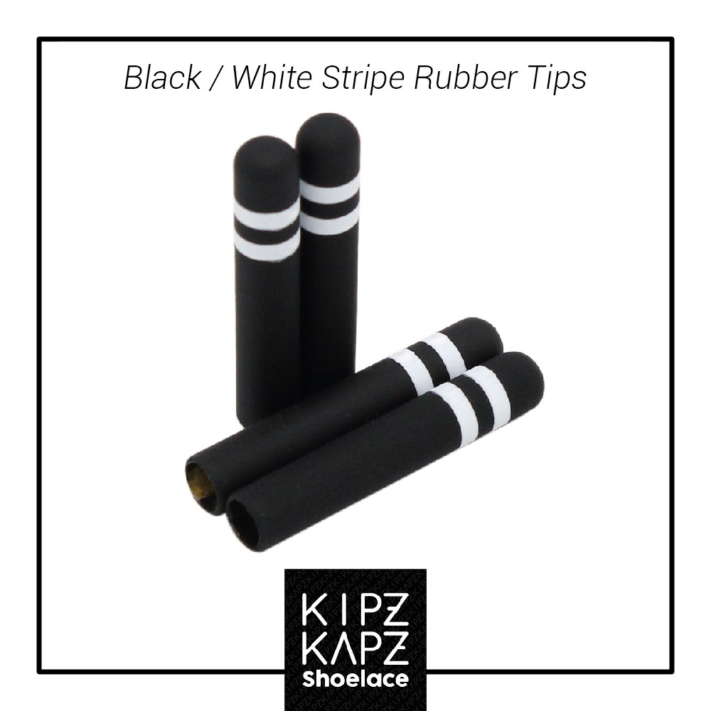 Tali Sepatu Aksesoris Perawatan KIPZKAPZ Shoelace BLACK RUBBER WHITE STRIPE Tips Aglets Tipping Ujung Murah Pria