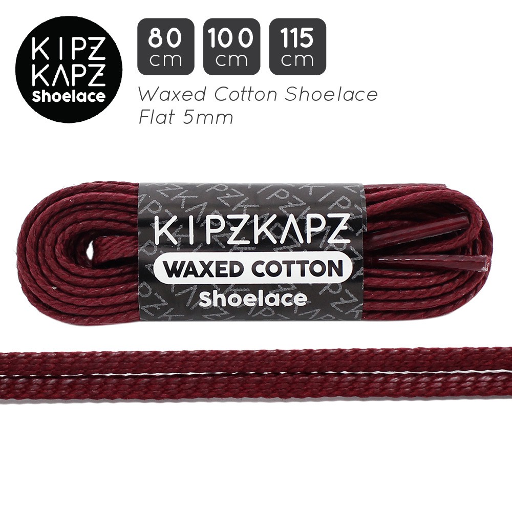 Tali Sepatu Aksesoris Perawatan KipzKapz WS54 Maroon Red 80cm 100cm 115cm Lilin Waxed Cotton Flat Shoelace Murah Pria