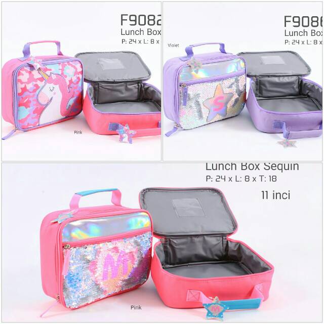 tas makan utk anak cewek yg lucu terdiri dr moti unicorn ataupun sequin yg bs diflip loh mom