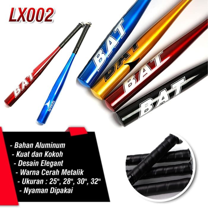tongkat dari logam aluminium ini kuat, ringan, dan mudah diarahkan untuk memukul bola target. alat ini nyaman digunakan, pegangannya dilapisi kulit sintetis dan karet antilicin sehingga mantap digenggam. tentunya tongkat baseball ini akan pas untuk anda yang memiliki tangan mudah berkeringat.