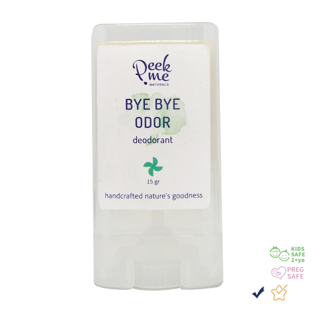 deodoran alami tanpa kandungan alumunium. menjaga tetap kering dan harum sepanjang hari! formulasi kami lembut di kulit, bisa digunakan setiap hari tanpa perlu mengkhawatirkan kandungan toksin/racun dan senyawa kimia yang bisa berbahaya. bye bye odor diformulasi dengan campuran essential oil yang bekerja sinergis mengurandi bau yang tidak diinginkan, mencegah munculnya bakteri, dan mengurangi keringat.
