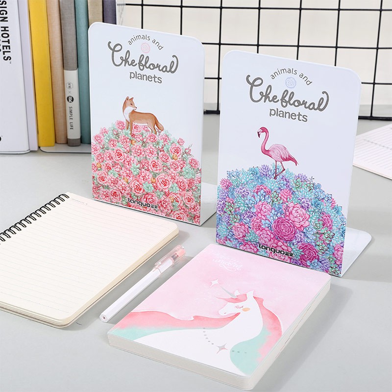 sandaran buku bertema flora dan fauna dalam warna-warna cerah ini bisa kamu gunakan untuk merapikan buku-buku milikmu dalam posisi berdiri. terbuat dari logam dan berbentuk l, di bagian dasarnya terdapat bantalan busa agar tidak licin dan tidak mudah bergeser dari tempatnya.