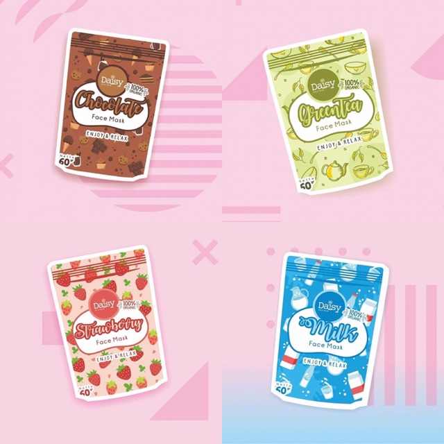 Masker Wajah Perawatan FREE KUAS DAISY ORGANIC FACEMASK 60gr Chocolate Strawberry Greentea Milk Murah Kecantikan
