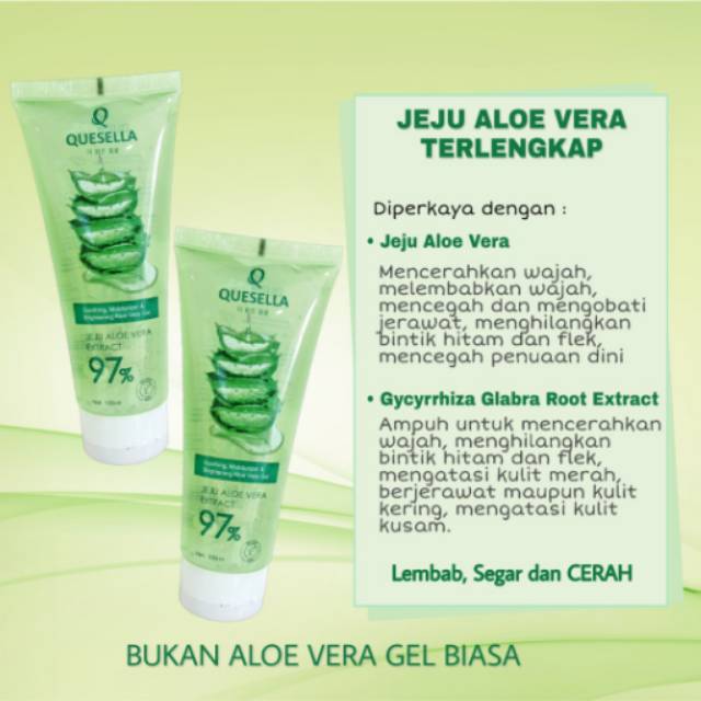 quesella soothing, moisture dan brightening aloe vera gel 100ml