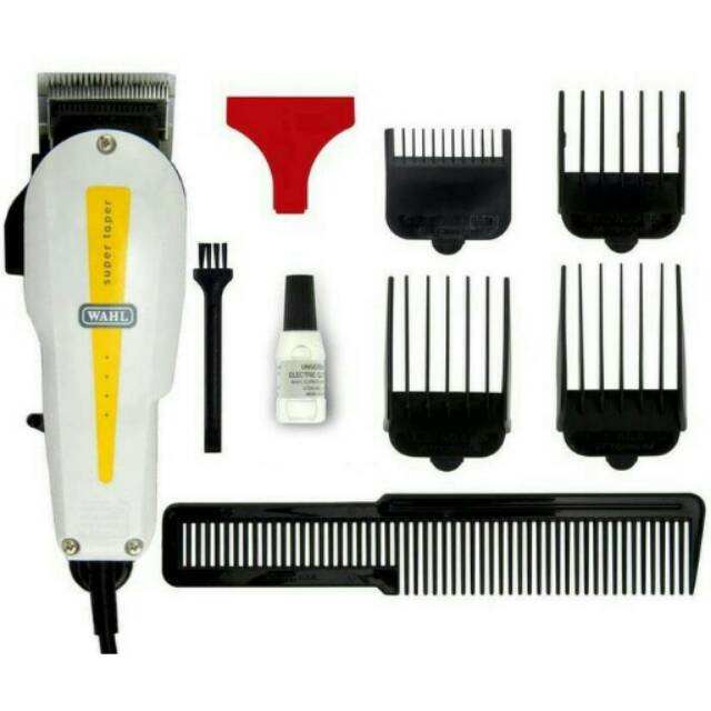 mesin cukur rambut wahl super taper ini sudah banyak di gunakan oleh para profesional tukang pangkas rambut, maupun oleh perorangan. mesin cukur rambut dari wahl ini di jamin kekuatan mesin cukurnya maupun pisau cukurnya.
