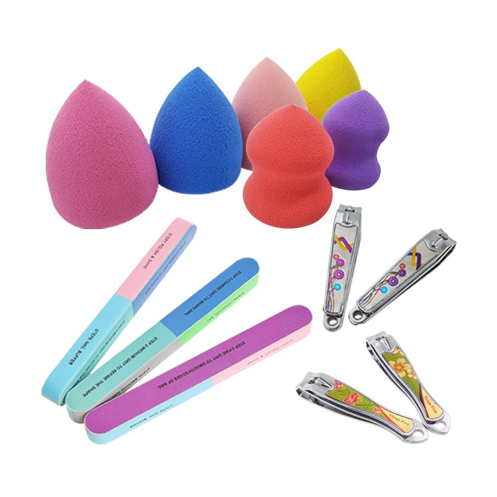 isi paket terdiri dari beauty blend 1pcs, pengikir kuku 1pcs, dan gunting kuku 1pcs (beauty blend dan gunting kuku dikirim random sesuai stok yang tersedia)