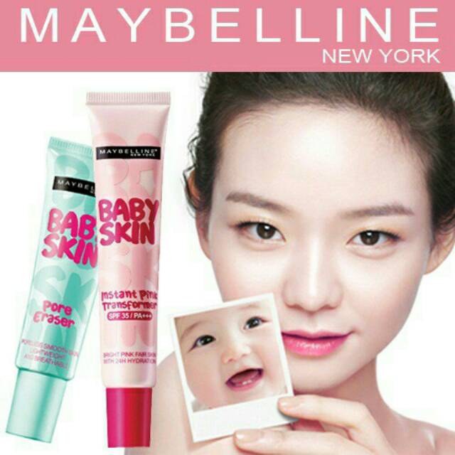 primer make up maybelline baby skin - instant pink transformer dengan spf 35/pa ++ dan ringan di kulit, wajah tampak cerah merona seperti kulit bayi
