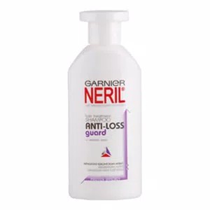 neril shampoo anti loss guard merupakan shampo dari brand garnier dengan kandungan yang berfungsi untuk membantu mengatasi dan mengurangi masalah rambut rontok. memiliki kandungan chamomile dan birch yang akan membantu menutrisi dan mengembalikan keratin rambut, serta melindungi dan menjadikan rambut anda lebih indah dan melembabkannya sehingga terlihat lebih lembut. penampilan rambut pun akan terlihat lebih indah dan sehat. kandungan dalam neril di buat dengan bahan alami yang aman untuk di gunakan.